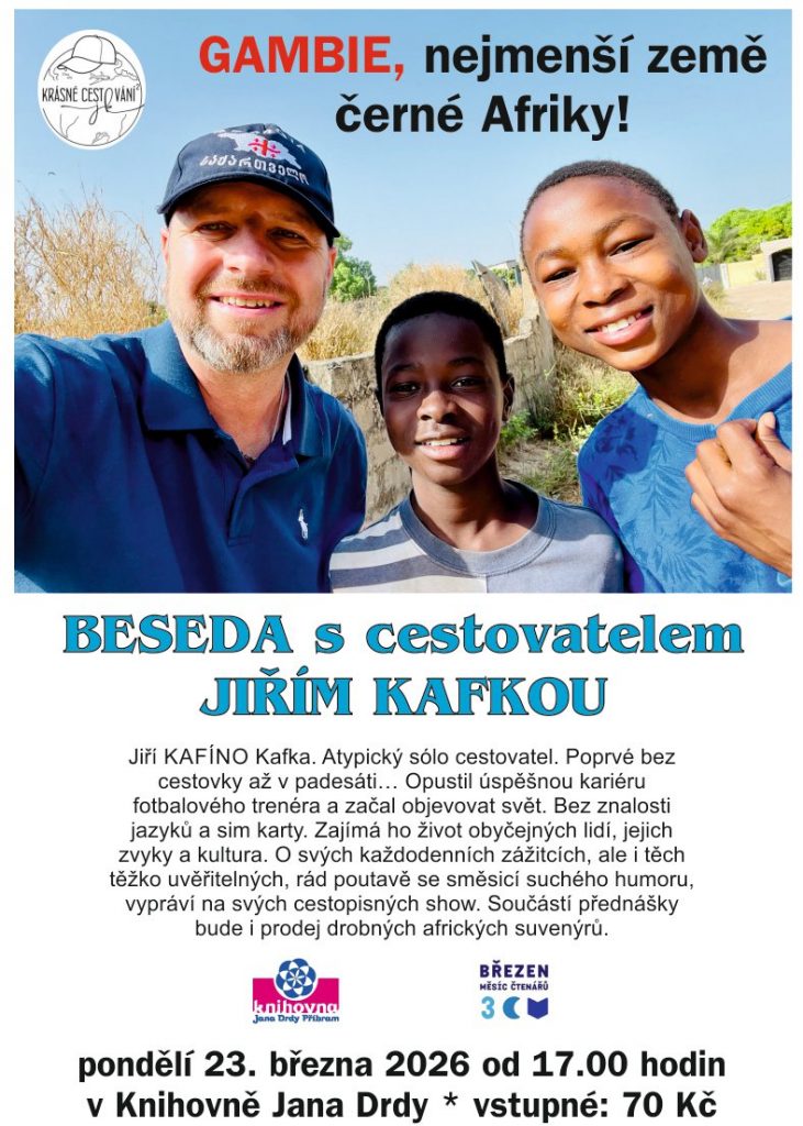 Jiří KAFÍNO Kafka. Atypický sólo cestovatel. Poprvé bez cestovky až v padesáti… Opustil úspěšnou kariéru fotbalového trenéra a začal objevovat svět. Bez znalosti jazyků a sim karty. Zajímá ho život obyčejných lidí, jejich zvyky a kultura. O svých každodenních zážitcích, ale i těch těžko uvěřitelných, rád poutavě se směsicí suchého humoru, vypráví na svých cestopisných show.
