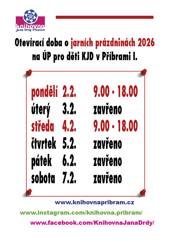 Jarní prázdniny jsou na základních a středních školách v roce 2026 rozloženy v týdenních termínech od 2. února do 15. března. U nás v Příbrami jsou od 2. února do 8. února 2026. I naše dětská oddělení se tomuto termínu přizpůsobí.