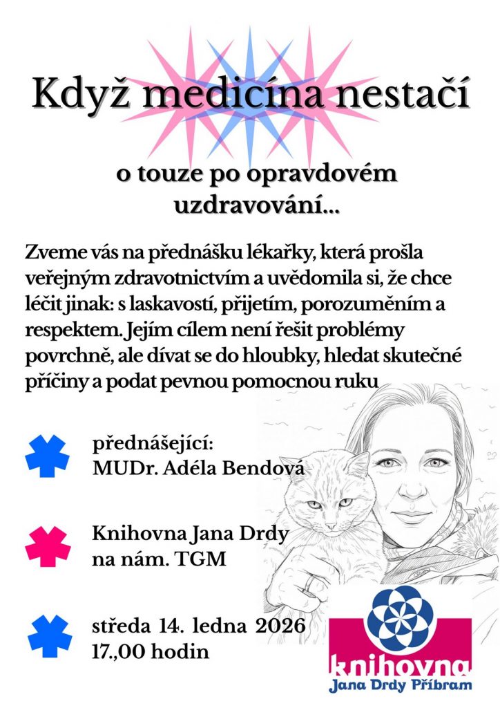 Jak zůstat zdravý v nemocném světě? Je nemoc selháním? Existují nevyléčitelné nemoci? A co je tedy podstatou uzdravení? Zveme vás na přednášku lékařky MUDr. Adély Bendové, která prošla veřejným zdravotnictvím a uvědomila si, že chce léčit jinak. S laskavostí, přijetím, porozuměním a respektem. Neřešit problém povrchně, ale podívat se do hloubky, hledat příčiny a podat pevnou pomocnou ruku.
