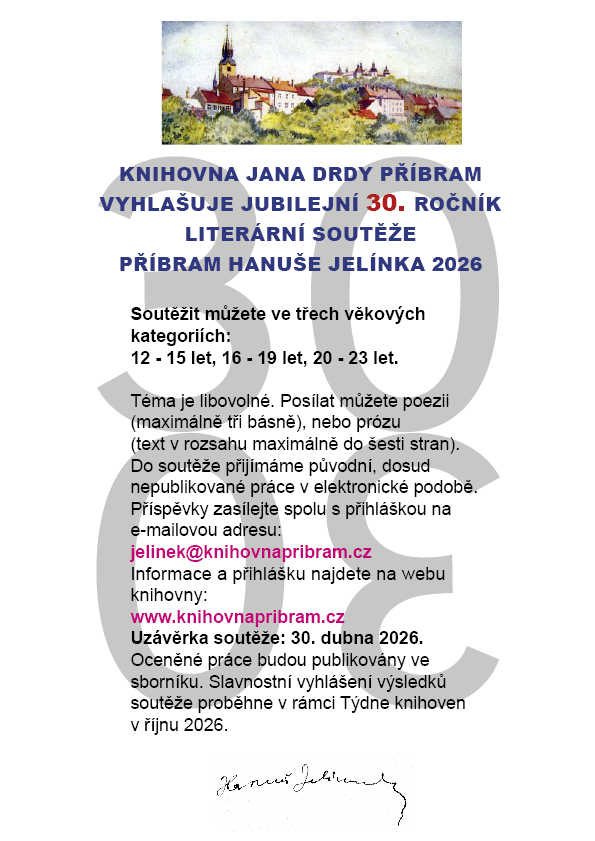 Když se v roce 1996 rozhodla příbramská Knihovna Jana Drdy vyhlásit literární soutěž pro mládež, přemýšlelo se, po kom ji pojmenovat. Byla navrhována různá jména, tu více, tu méně známá. Nakonec volba padla na poměrně pozapomenutého příbramského rodáka, zetě Aloise Jiráska, básníka a překladatele Hanuše Jelínka. V prvorepublikovém období byl tento absolvent pařížské Sorbonny jedním z nejlepších překladatelů a propagátorů francouzské literatury u nás. Soutěž tedy dostala jméno „Příbram Hanuše Jelínka“ a po skromných začátcích letos proběhne už její třicátý ročník. Několika prvních se zúčastňovalo deset, patnáct soutěžících, vesměs z Příbrami a okolí. Dnes můžeme říci, že počty soutěžících mladých literátů dosahují stovky, a to z celé naší republiky i Slovenska. Jméno Hanuše Jelínka se tak dostalo do podvědomí naší mládeže. A to je jenom dobře…
