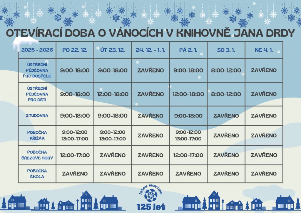 Jak budeme mít otevřeno o letošních Vánocích v knihovně a na pobočkách? Zde máte přesný plán. A přejeme všem našim čtenářům a příznivcům krásné vánoční svátky!!!