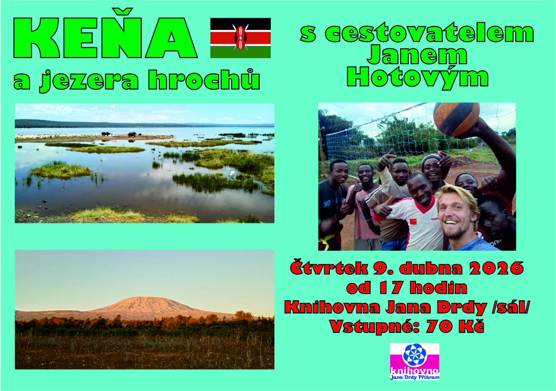 Keňa, to není jen safari a rodiště nejrychlejších běžců světa. Ve zbytcích nenarušené přírody se zde ukrývají roztodivná stvoření, a v zemi leží úchvatné drahokamy, které nikde jinde nenajdete. Povídání nás zavede od jezer plných hrochů k největšímu africkému Viktoriinu jezeru, od Velké příkopové propadliny až po nejvyšší sopečné masívy v čele s Kilimandžárem. Kde se potkat s Masaji, jaké jsou tradiční keňské pokrmy nebo na co si dát v této rovníkové zemi pozor? To a mnohem více už 9.4. od 17:00 v příbramské Knihovně Jana Drdy.